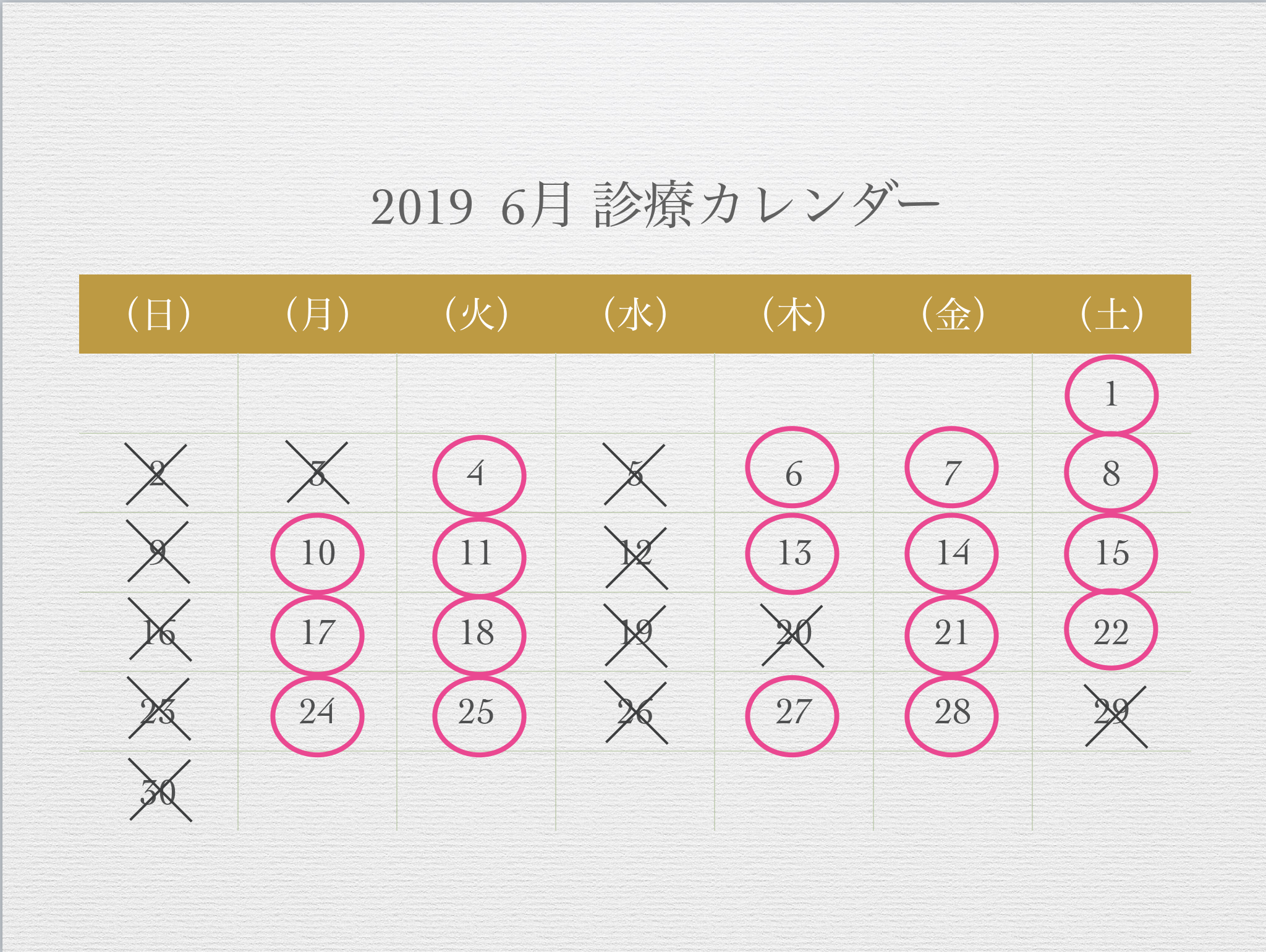 6月の診療カレンダーです。